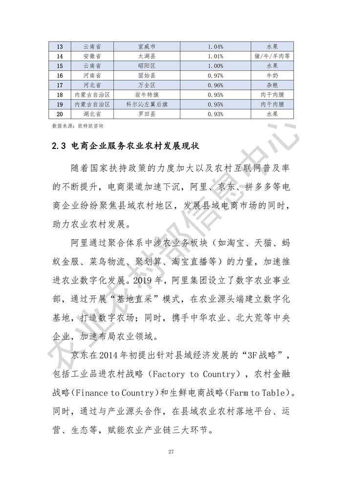 點(diǎn)擊查看完整報(bào)告:2020全國(guó)縣域數(shù)字農(nóng)業(yè)農(nóng)村電子商務(wù)發(fā)展報(bào)告.pdf